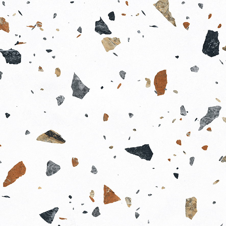 Тераццо Бианко Керамогранит цветной 60х60 матовый гравированный